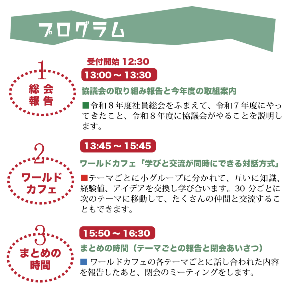 会員のみなさん、ぜひ会員総会に集い、お声をお聞かせください。心よりお待ちしています。