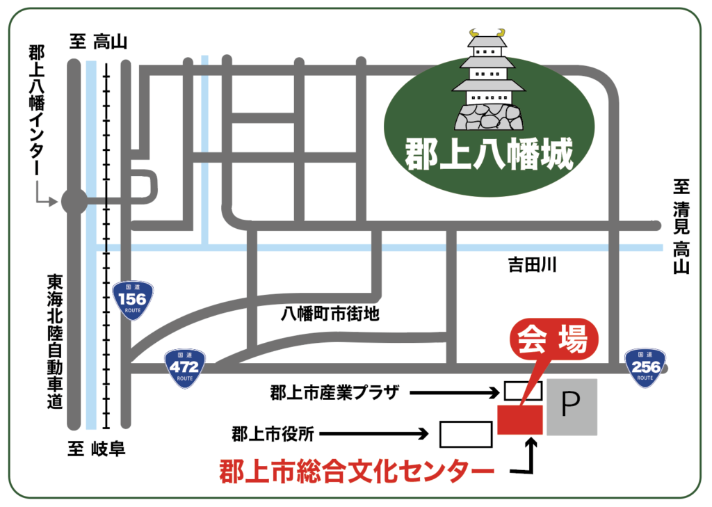 郡上市総合文化センター(多目的ホール) 〒501-4222 岐阜県郡上市八幡町島谷207−1