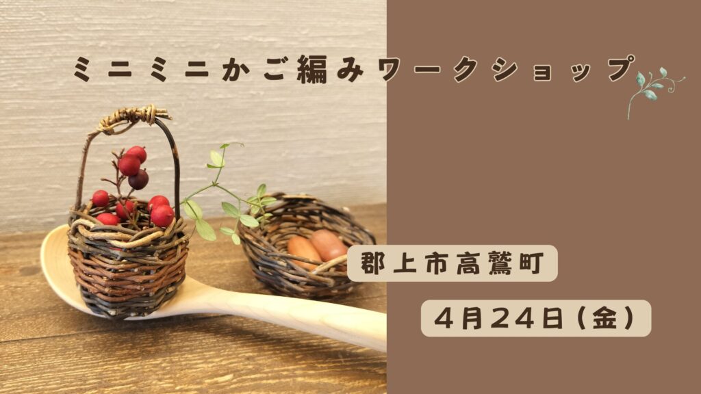 ミニミニかご編みワークショップ、郡上市高鷲で開催します!会場として使わせていただくのは、日日の家(にちにちのいえ) さん @nichinichi_2022趣のある古民家です。 作るのは直径4センチ前後のミニミニかご。入る […]