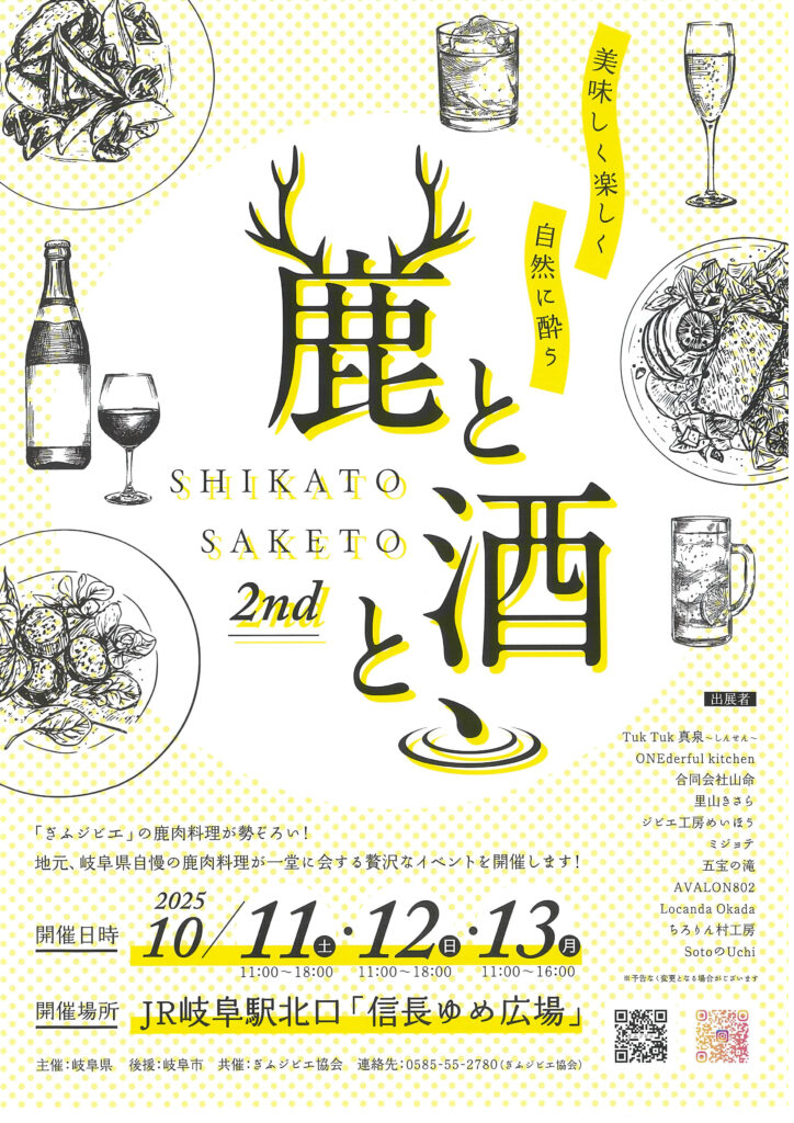 地元、岐阜自慢の鹿肉料理が一堂に会する贅沢なイベントを開催します!