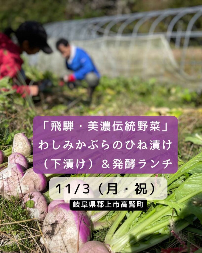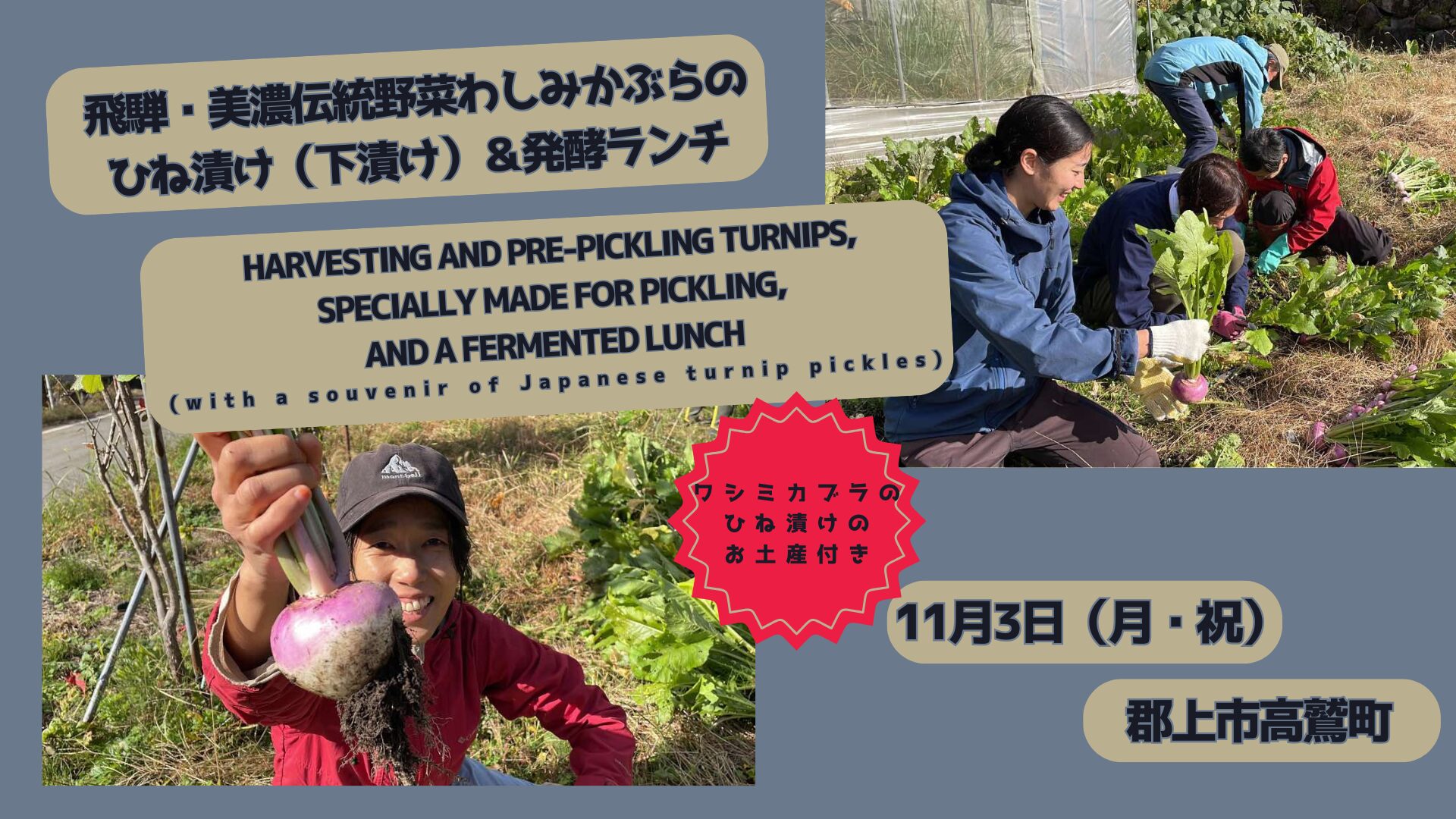 飛騨・美濃伝統野菜わしみかぶらのひね漬け(下漬け)&発酵ランチ(ワシミカブラのひね漬けのお土産付き)Harvesting and pre-pickling turnips, specially made for pickling, and a fermented lunch (with a souvenir of pickled turnips)