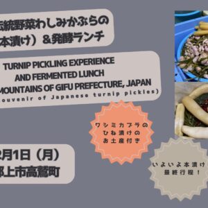 飛騨・美濃伝統野菜わしみかぶらのひね漬け(下漬け)&発酵ランチ(ワシミカブラのひね漬けのお土産付き)Harvesting and pre-pickling turnips, specially made for pickling, and a fermented lunch (with a souvenir of pickled turnips)