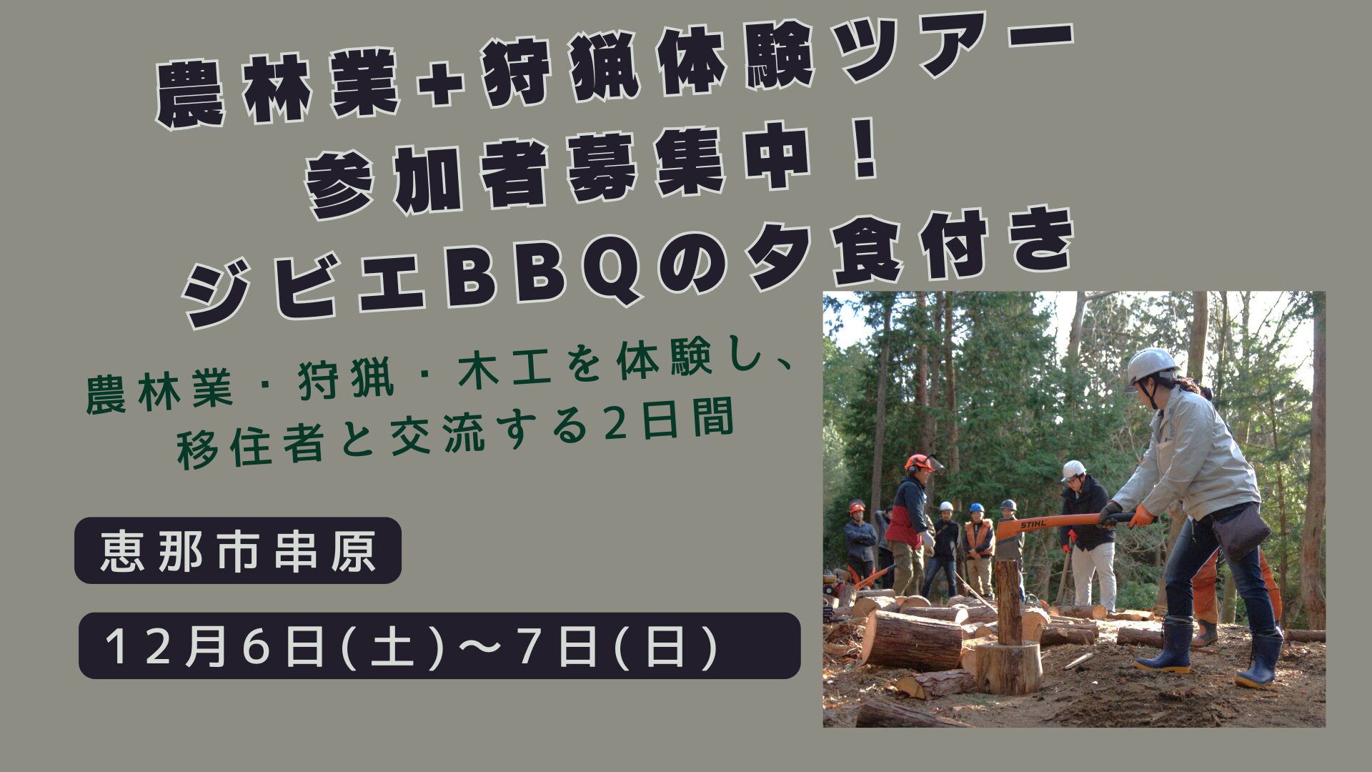 農林業+狩猟体験ツアー参加者募集中! ~ジビエBBQの夕食付き〜