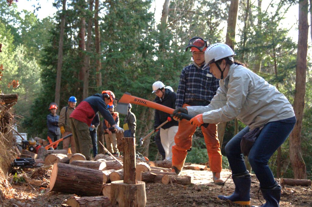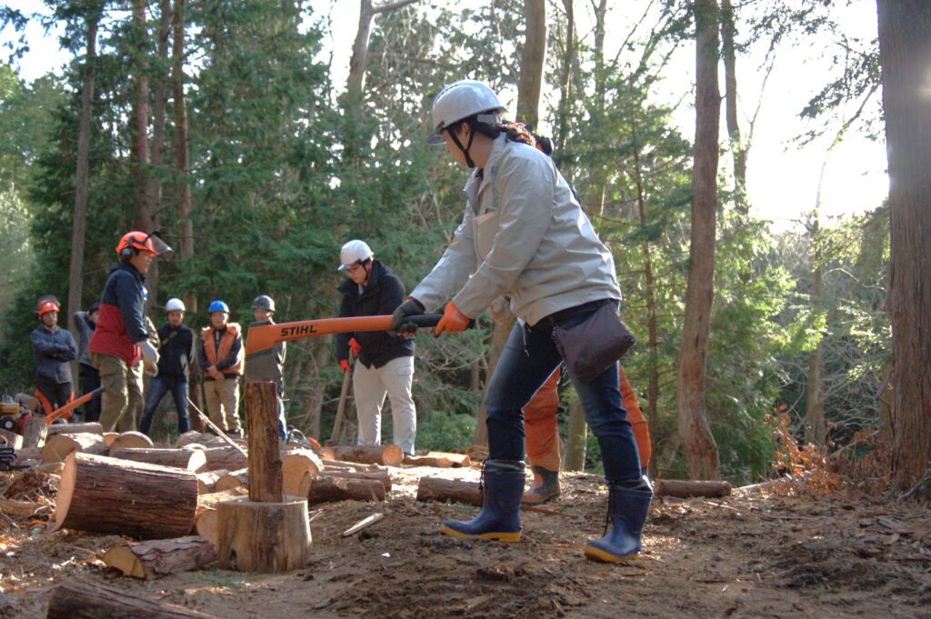10:30 森林学習【森林管理と間伐を学ぶ】、林業・薪割体験