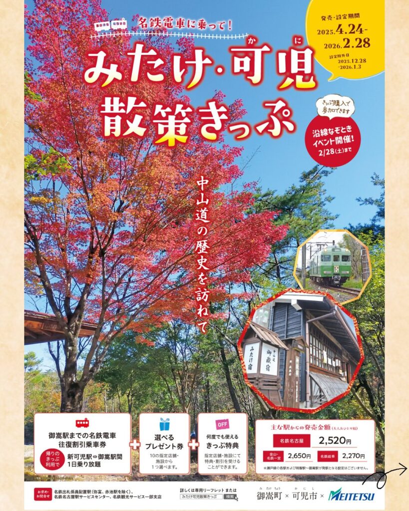 「みたけ・可児散策きっぷ」を購入するとご参加いただけます。