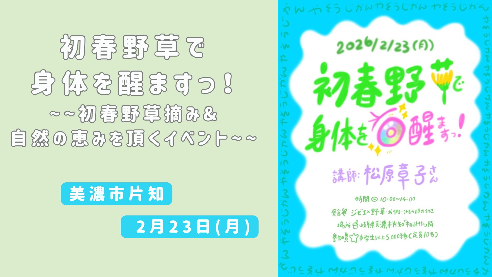 初春野草摘み&自然の恵みを頂くイベントのお知らせです🌿📢