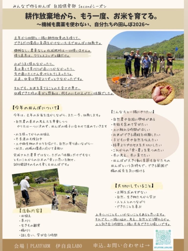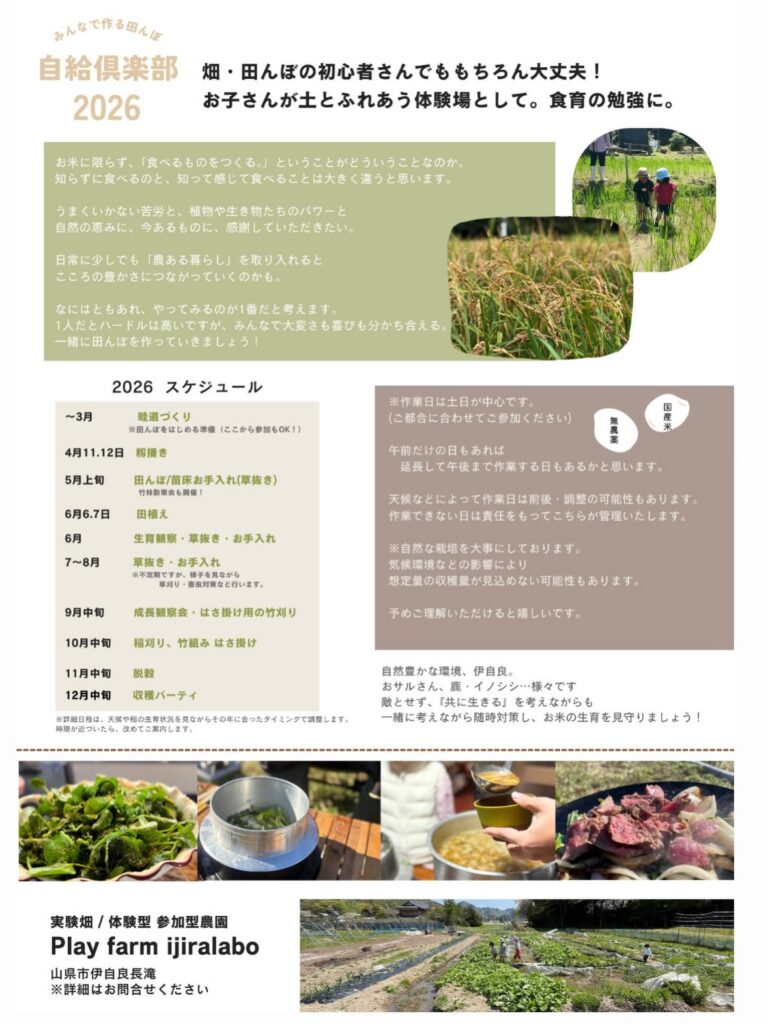 「みんなで作る田んぼの自給倶楽部」2026