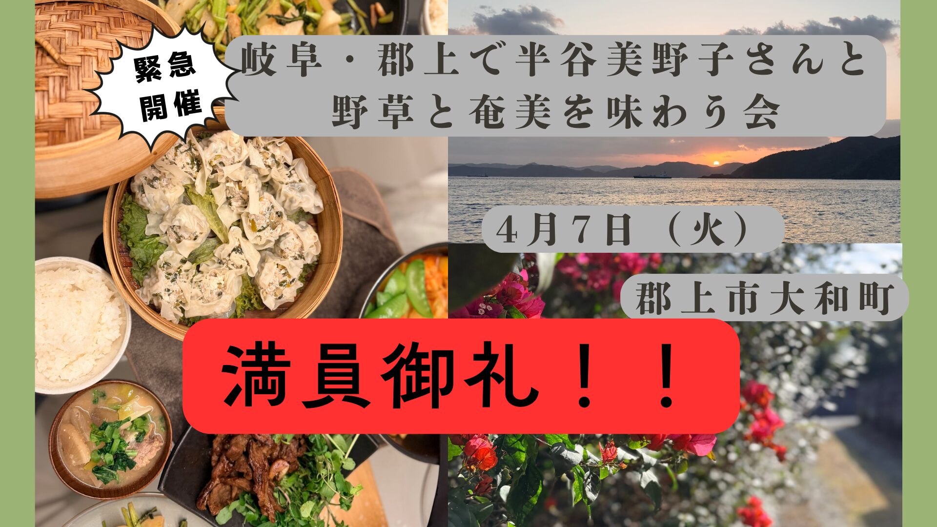 【緊急開催!】岐阜・郡上で半谷美野子さんと野草と奄美を味わう会