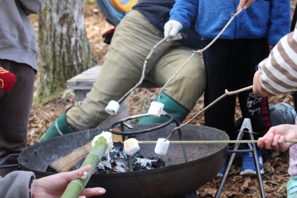 たき火でマシュマロを焼いたり、ポップコーンづくりもたのしそう!