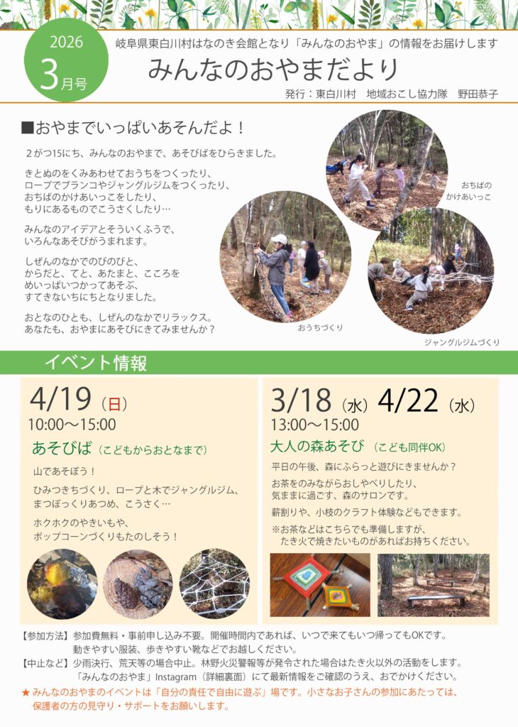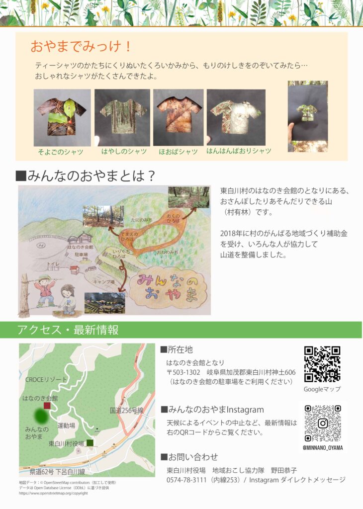 みんなのおやまは、加茂郡東白川村にある、遊んだりお散歩したりできる森です。