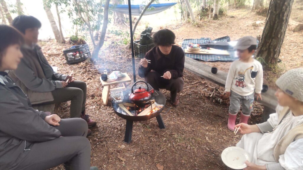 森の中でたき火を囲みお茶をのみながらおしゃべりしたり、気ままに過ごす、森のサロンです。