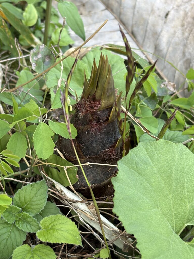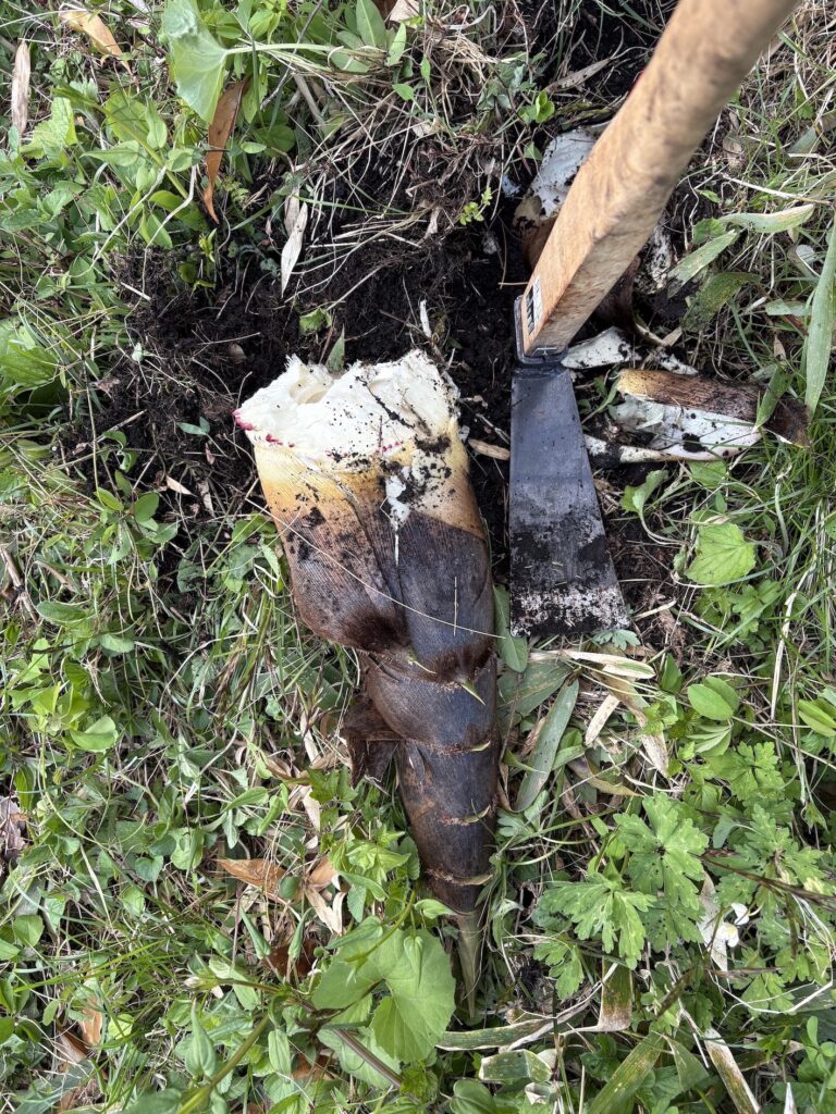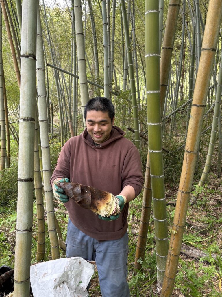 お山のお家の裏山で、たけのこ掘りで田舎体験。