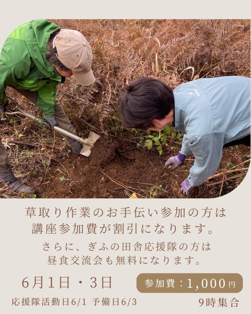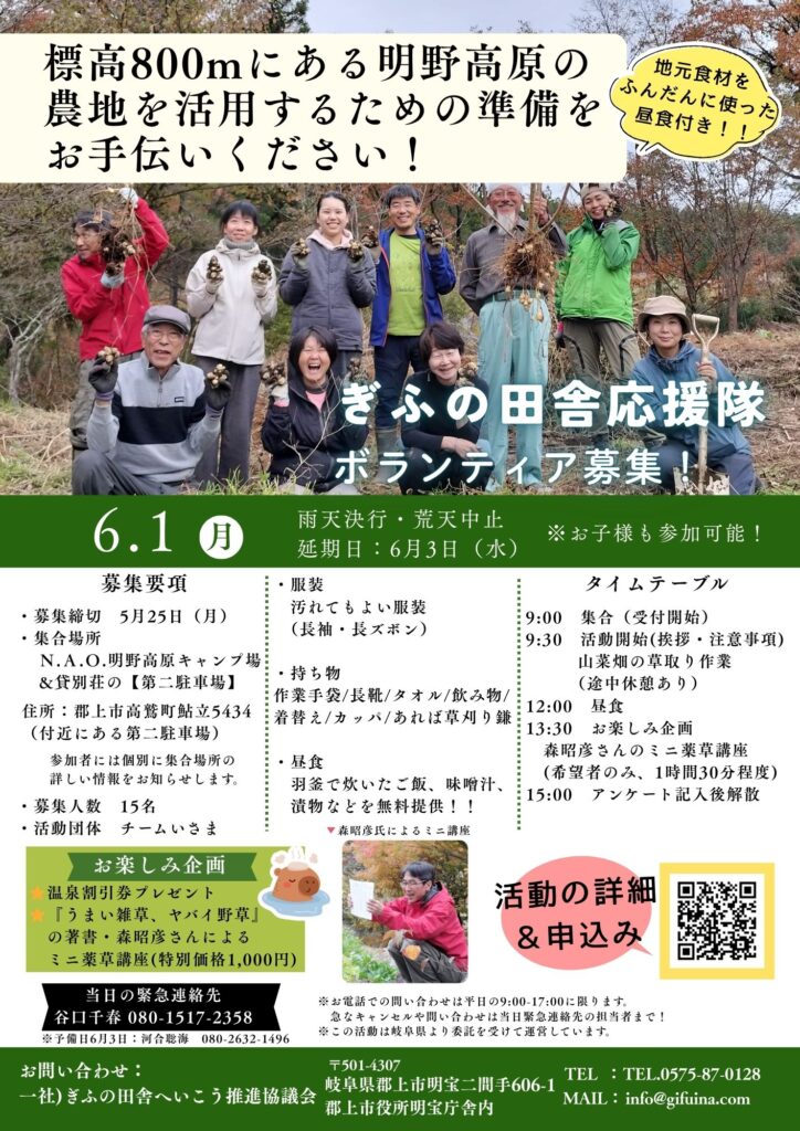 ※6/1(予備日6/3)は、岐阜県のボランティア制度”ぎふの田舎応援隊”が同時開催されます。