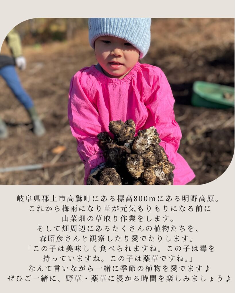 「この子は美味しく食べられますね。この子は毒を持っていますね。この子は薬草ですね。」なんて言いながら一緒に季節の植物を愛でます♪