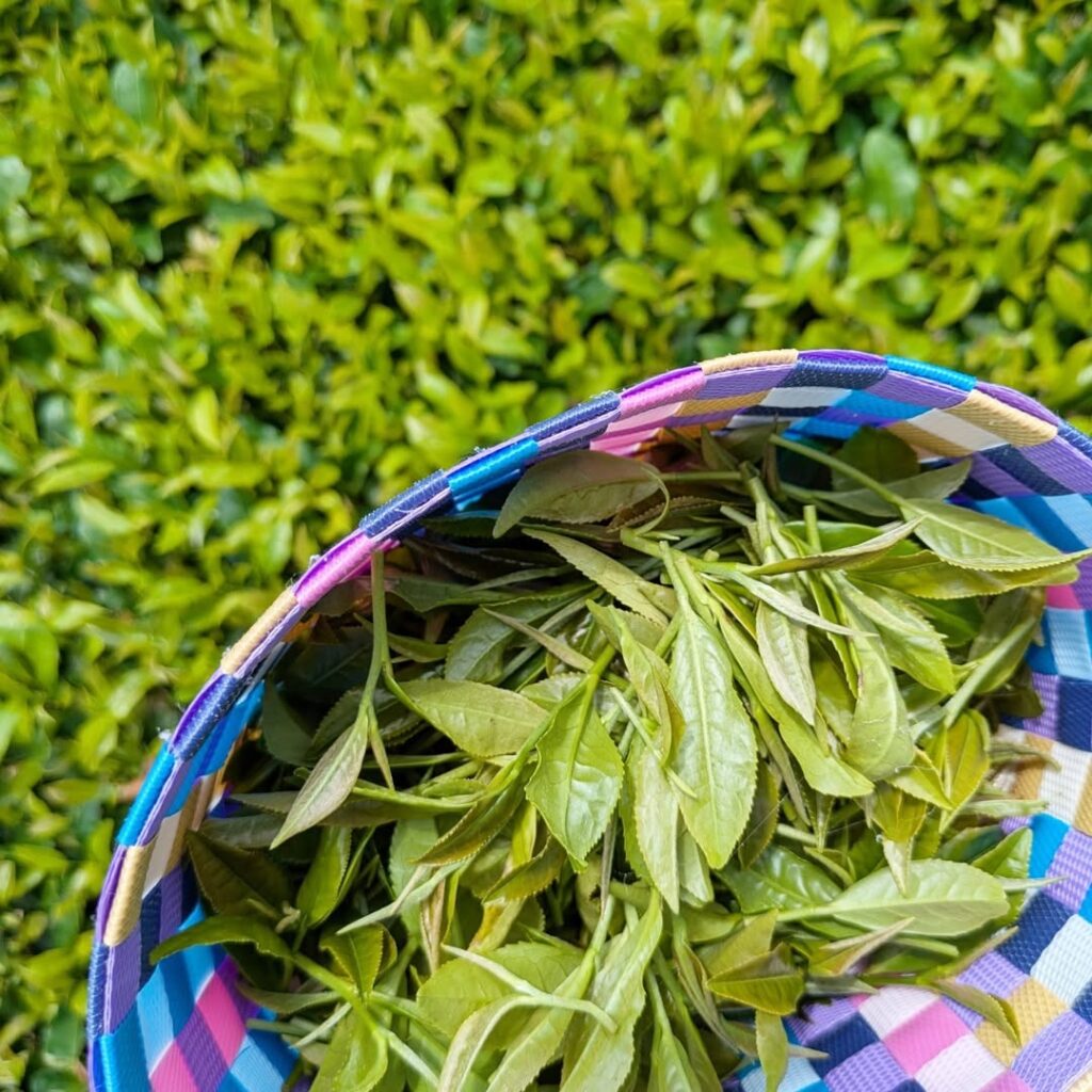 茶摘みは、こちらでご用意したカゴに一杯分を体験いただけます。