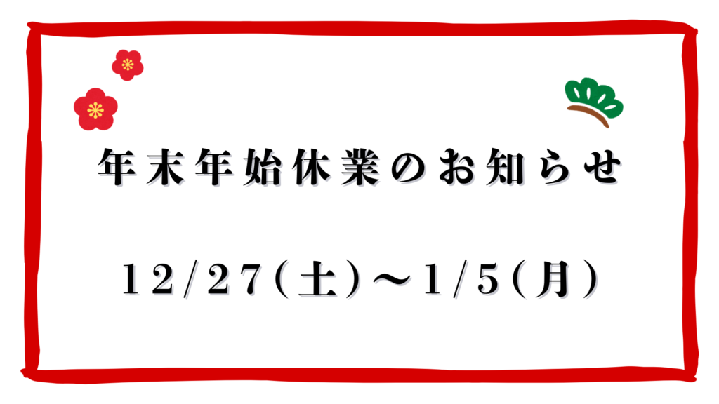 誠に勝手ながら、2025年12月27日(土)〜2026年1月5日(月)までお休みとさせていただきます。