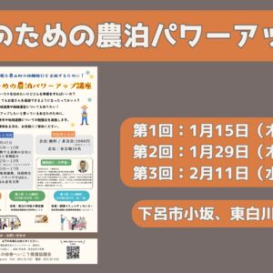 なお、第1回目講習会の翌日(1月15日(木))には、近隣の下呂市小坂町で”実践者のための農泊パワーアップ講座”も開催されます!こちらも参加無料(ぎふの田舎へいこう推進協議会会員のみ)。